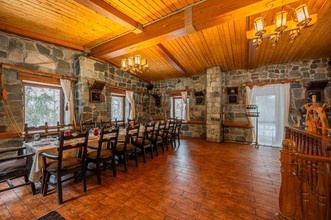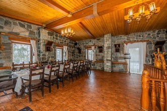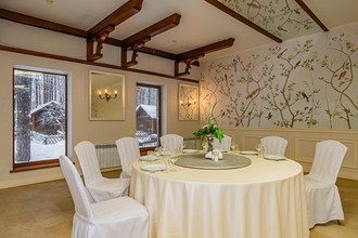 Молодоженам предлагается несколько площадок: банкетный зал до 150 человек, два зала ресторана, работающих круглосуточно, площадка для фуршета и регистрации свадеб. Здесь есть все, что нужно для того, чтобы ваше торжество прошло ярко и незабываемо. Для молодых в подарок каравай и номер вип